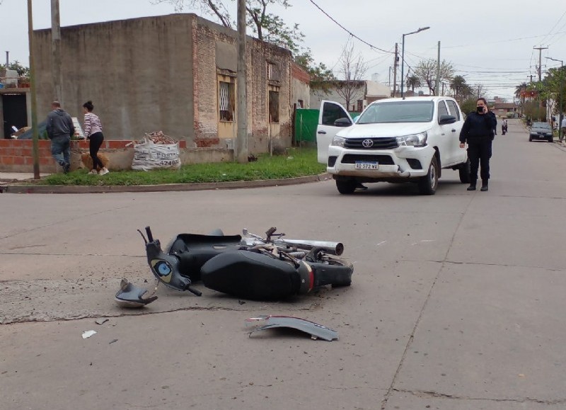 Según informaron testigos, previo a la colisión la camioneta se desplazaba por calle Pueyrredón, mientras que la motocicleta lo hacía por calle Libertad.