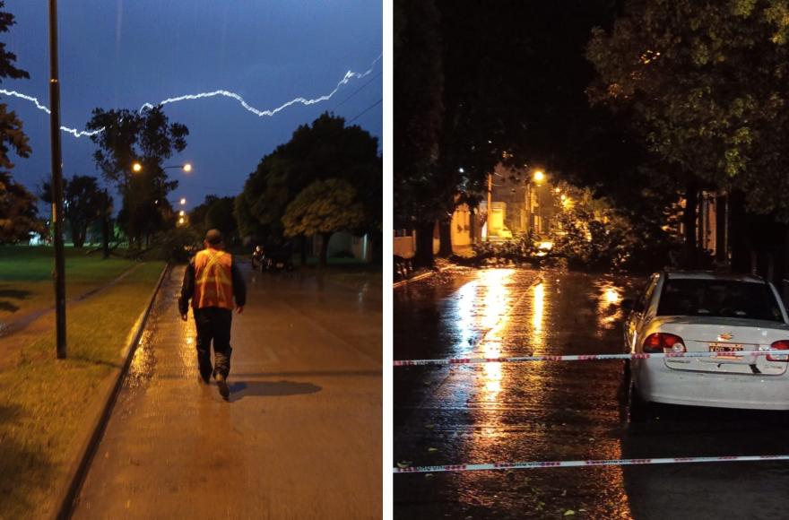 A primera hora, el personal municipal se encontraba abocado a la caída de dos árboles: uno en la Plaza de los Bomberos y el otro en la calle Bernardino Esperanza, altura Güemes.