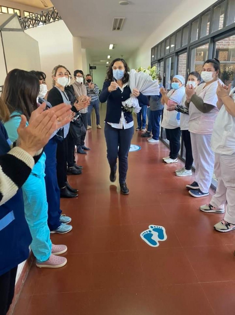 Myrna, con su coraje intacto, mostraba una fortaleza que nos daba e inspiraba confianza, haciendo que nuestros miedos calmaran, que la ansiedad sea más llevadera. Siempre tuvo palabras y acciones concretas. Hoy le llegó el momento, el cansancio comenzó a pasar “factura” y el cuerpo necesita reposar, su corazón necesita del cariño de su familia y amigos, aquellos a los que relegó durante más de un año en pos de cuidar a cada vecino de la ciudad. ¡GRACIAS!