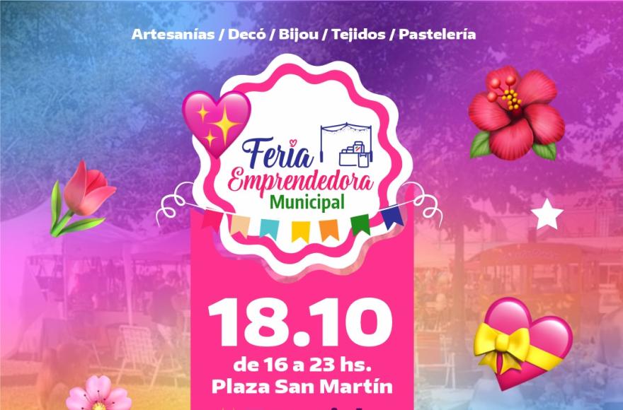 Este sábado 18 de octubre, de 16 a 23 horas, se realizará en la Plaza San Martín una nueva edición de la Feria Emprendedora Municipal, en esta ocasión dedicada especialmente al Día de la Madre.