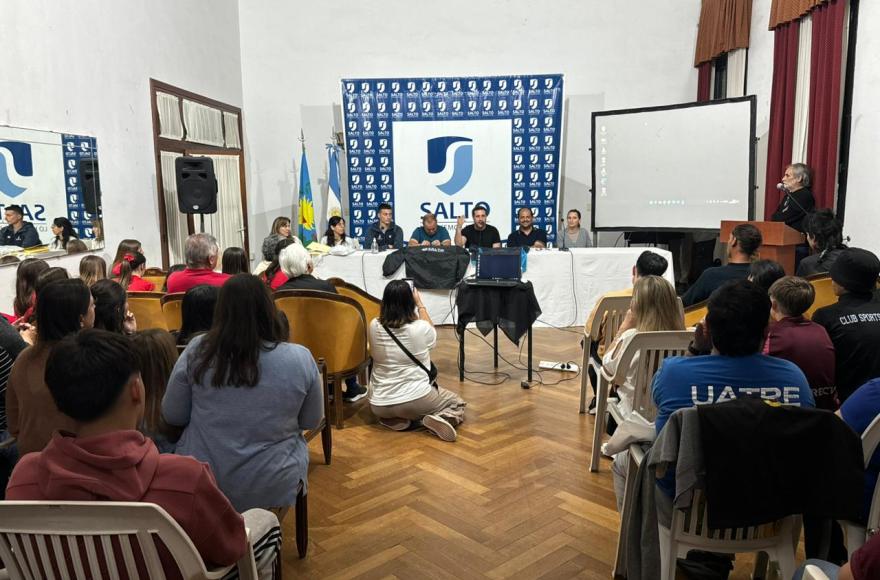 En el lugar fueron recibidos los 140 integrantes que representarán a Salto en la competencia provincial que se desarrollará en la ciudad de Mar del Plata.