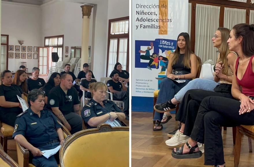 La Dirección de Niñeces, Adolescencias y Familias realizó una jornada de capacitación dirigida al personal de las fuerzas de seguridad, con la participación de Monitoreo, Policía Comunal y la Policía de la Comisaría de la Mujer y Familia.