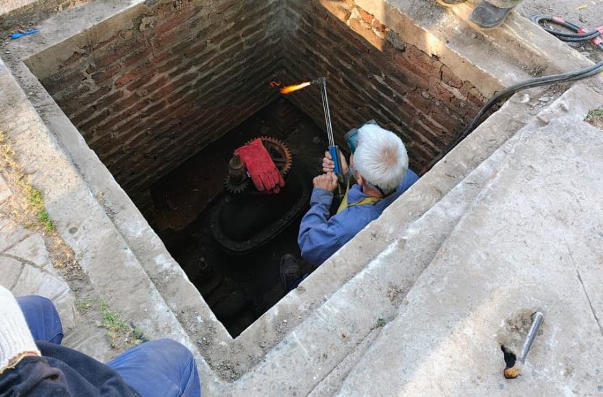 Por un lado, se lleva a cabo el recambio de una válvula en la cañería de impulsión de 400mm ubicada en Avenida Mitre y Avenida Dardo Lafalce. Al tratarse del conducto principal que abastece a la ciudad, esta maniobra resulta indispensable para asegurar la operatividad del servicio.
