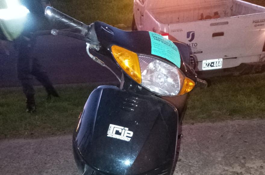 Previamente, en un operativo dinámico realizado por la tarde en la zona de Chaco y Juan Manuel de Rosas, se había retenido una motocicleta Motomel Blitz que presentaba un notorio estado de deterioro y acumulaba múltiples faltas, entre las que se constataron: