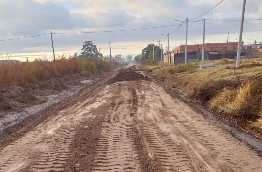 Además, personal y maquinaria del Obrador Municipal se encuentra en barrio Valacco realizando arreglos, marcación de cunetas y emparejamiento de calles.